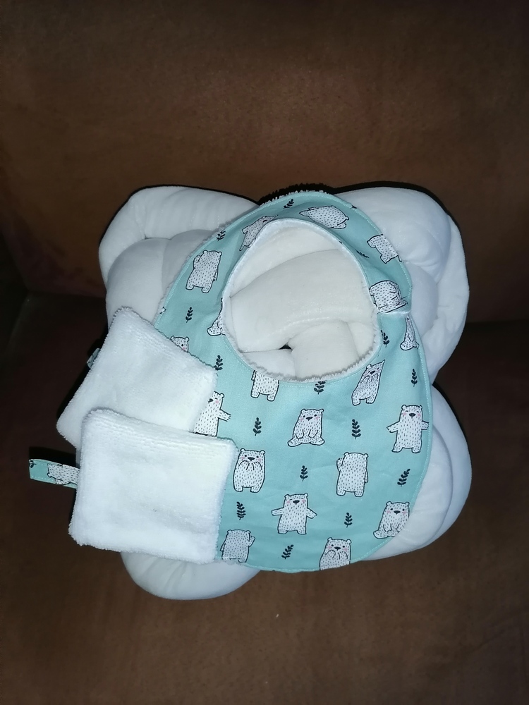 - Bavoir absorbant pour protéger bébé lors de ses premiers repas.
