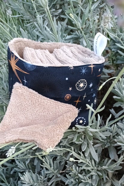 Panier en coton, doublé en éponge bambou – 8 lingettes démaquillantes en éponge bambou