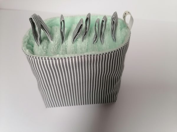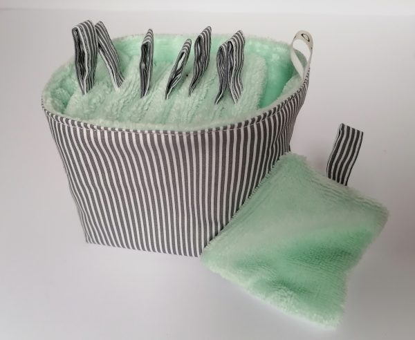 Panier en coton doublé d’éponge bambou – 8 lingettes en éponge bambou pour se démaquiller ou pour nettoyer bébé.