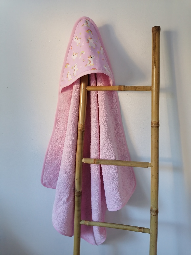 Sortie de bain en éponge et son biais.